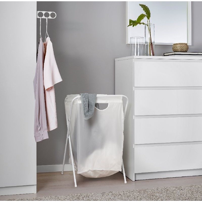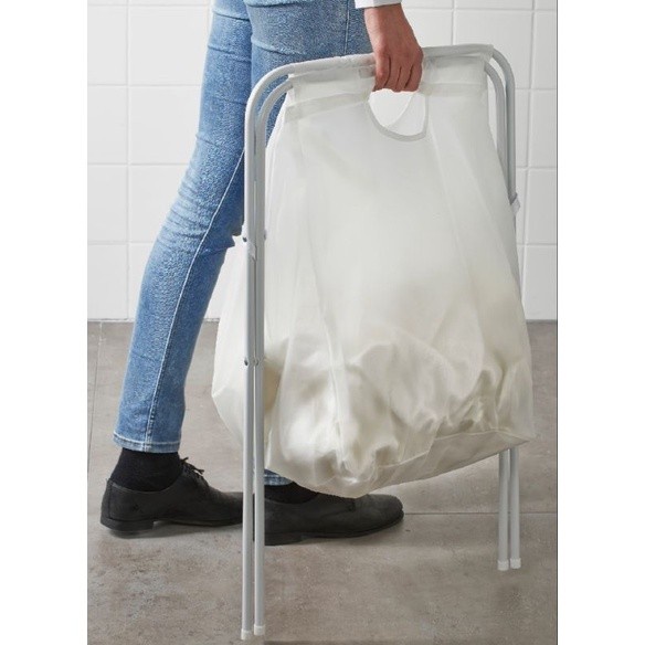 Detail KERANJANG LAUNDRY BAG BAJU LIPAT TEMPAT CUCIAN TEMPAT BAJU KOTOR DENGAN STAND PUTIH