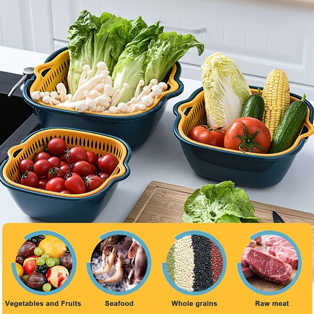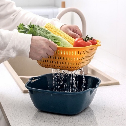 Detail Keranjang Mini Saringan Buah Dan Sayur / Baskom Saringan 2in1 Wadah Tirisan Sayur Double Layer
