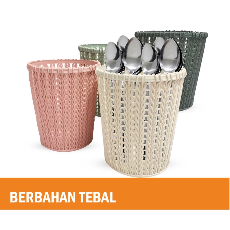 Detail Keranjang Plastik Serbaguna Tempat Sendok Garpu Sumpit Pisau Bulat Organizer Kosmetik Bulat Kecil