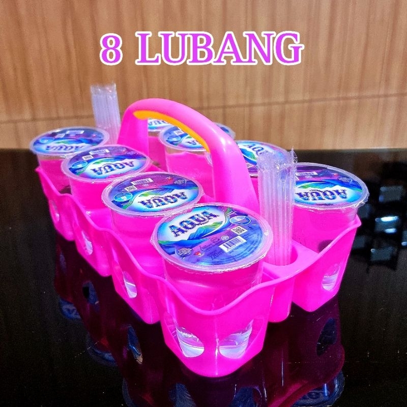 Keranjang Rak Tempat Wadah Aqua Cup Gelas Air Mineral Cup Gelas Minuman Tenteng Bergagang Gagang Plastik ISI 8 LUBANG SLOT ISI 12 LUBANG SLOT ISI 16 LUBANG SLOT ISI 20 LUBANG SLOT