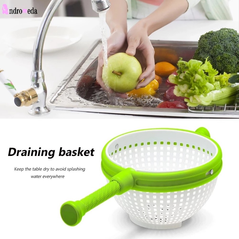 Detail Keranjang Saringan Buah / Sayuran Model Spinner Dengan Gagang Dapat Dilipat Hemat Tenaga