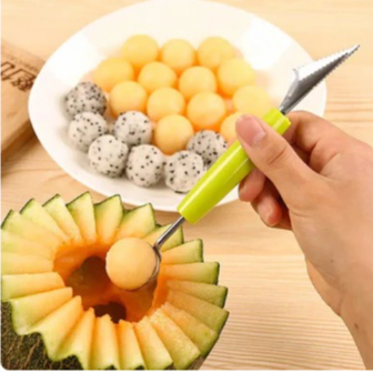Kerokan Buah Bulat 2in1 Kerokan Blewah Kelapa Melon Parutan Buah Cocktail Semangka Skop Buah Stainless Steel Membuat koktail buah sekarang mudah sekali, dengan sendok ini anda dapat dengan mudah membuat daging buah nya berbentuk bulat dengan sempur nya, terbuat dari stainless steel dan disertai dengan gagang plastik yang besar jadi penggunaanya pun akan semakin nyaman, biarpun buah yang mau di kerok ada banyak. Cara penggunaan : Masukkan sendok ke dalam buah dan putar ke satu arah untuk mendapatkan bola2 buah yg cantik. Anda juga bisa mengukir melon, semangka seperti bunga Panjang kerokan : -/+ 18cm ( diameter sendok kerokan 3 cm ) NOTE : Untuk warnanya kami kirim Random sesuai dengan stok yang tersedia