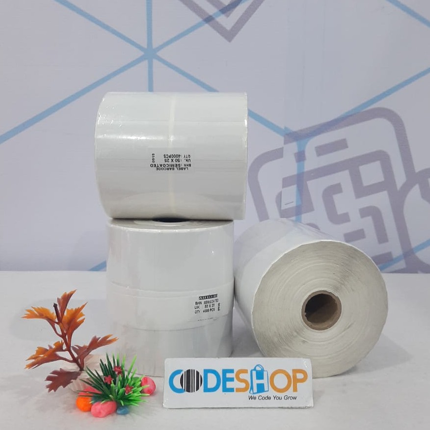 Informasi Produk : - Bahan : Semicoated - Lebar : 50 mm - Tinggi : 25 mm - Baris : 2 Line - Isi : 4.000 pcs / roll - Core : 1 Inch (Kecil) - Perforasi / Ada Garis Sobek - Gap Kanan Kiri Atas Bawah - Harga diatas tercantum untuk 1 Roll label - Berat diatas tercantum untuk 1 Roll label