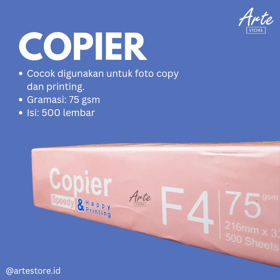 Keterangan: - Cocok digunakan untuk Foto Copy atau Printing - 1 pack isi 500 lembar (1 rim) - Gramasi: 75 gr - Ukuran Kertas: F4 - Harga yang tertera harga per pack