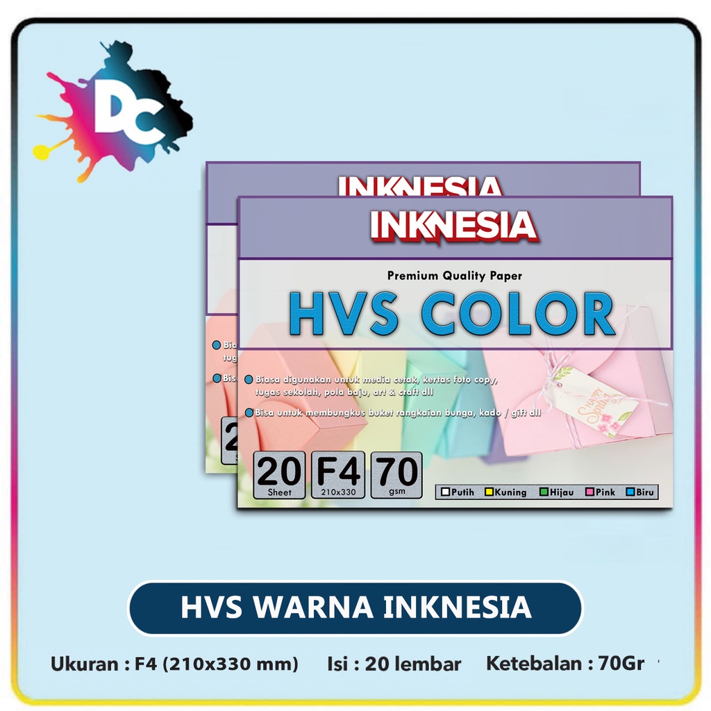 Kertas HVS Warna F4 70 gsm 20 LembarKertas HVS Warna F4 70 gsm 20 Lembar