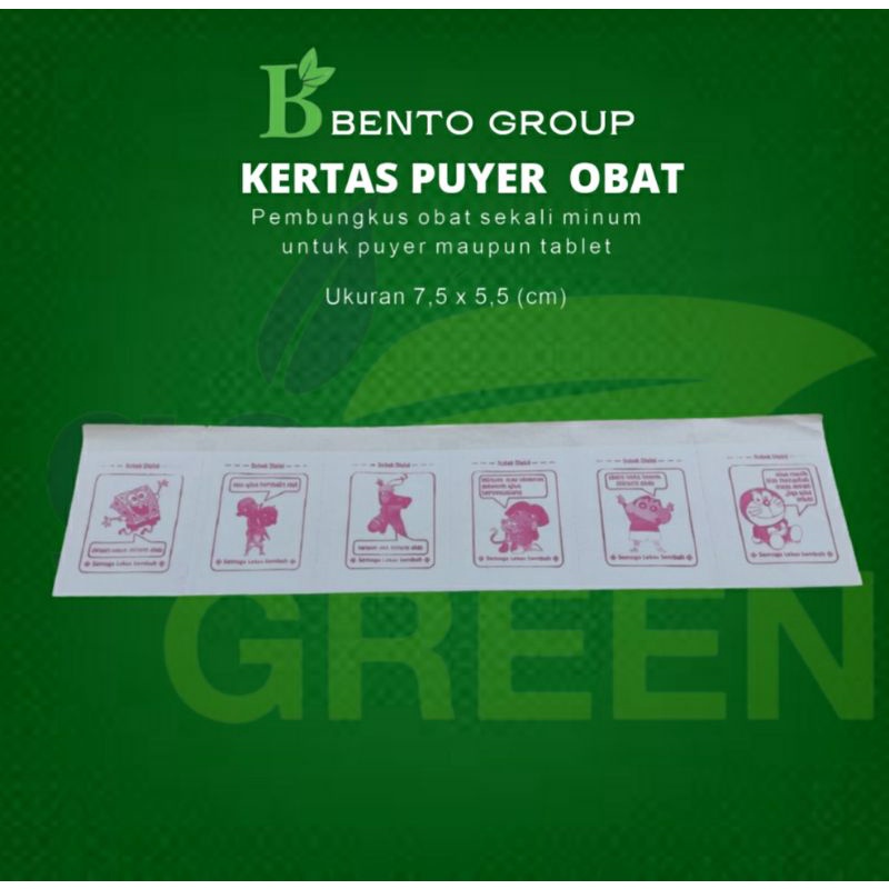 Ready Stock kertas puyer berlogo kartun 1 bandel isi 1200 pcs * kartun : Dora , naruto ,spongebob , upin-ipin * jenis kertas : laminasi 20% * panjang kantong : 7,5 cm * lebar kantong : 5,5 cm * kertas kedap air * sterilisasi UV & Ozone *logo 1 warna dan 1 muka *produk kami sudah terdaftar dan diakui oleh dinas kesehatan RI.