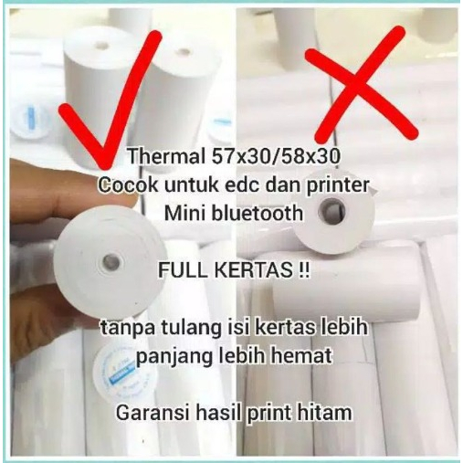 Kertas Struk Thermal Paper Roll 58x30 Termal EDC Thermal Printer Mini Bluetooth 57x30 Coreless