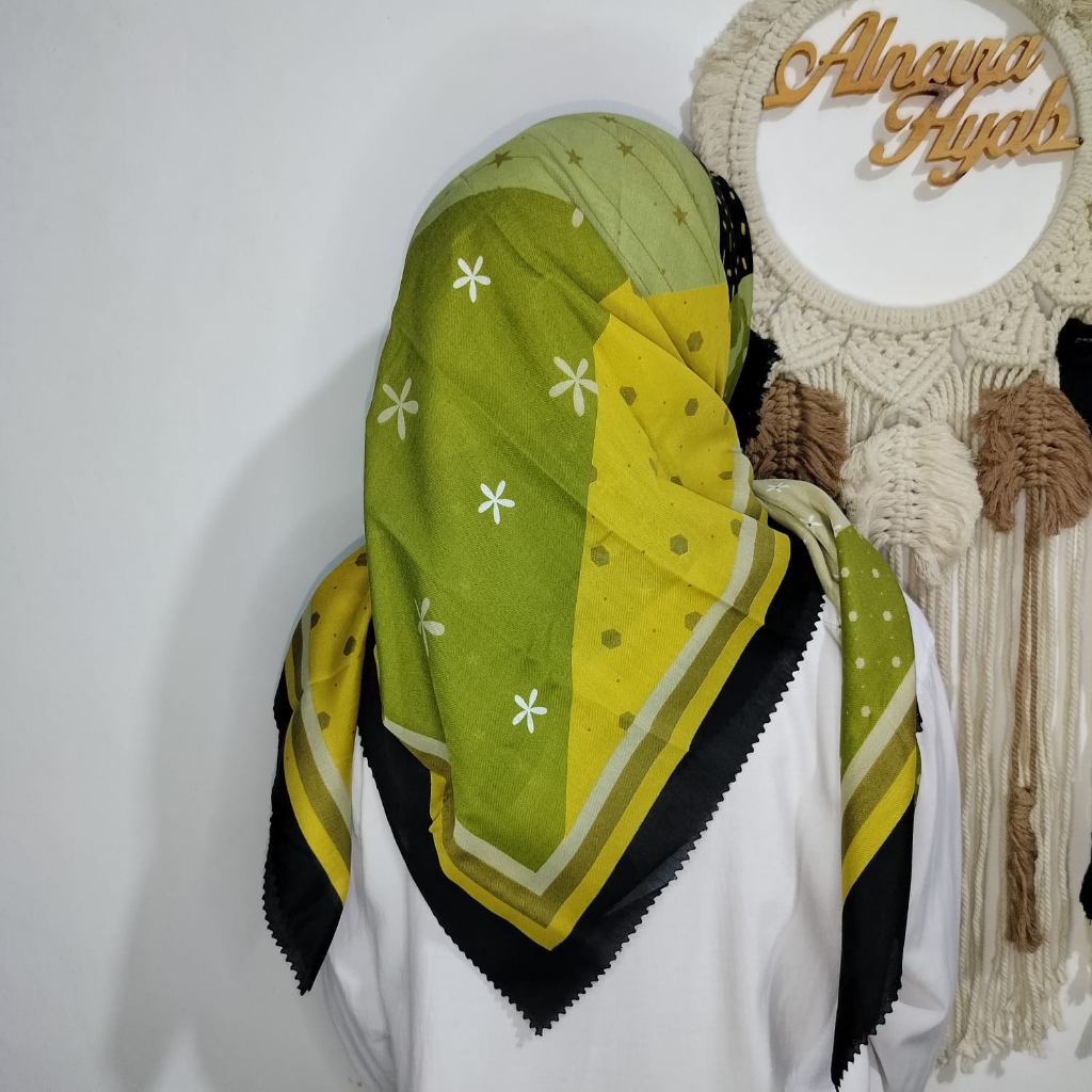 Detail HIJAB SEGI EMPAT MOTIF LEVEL UP MACAN