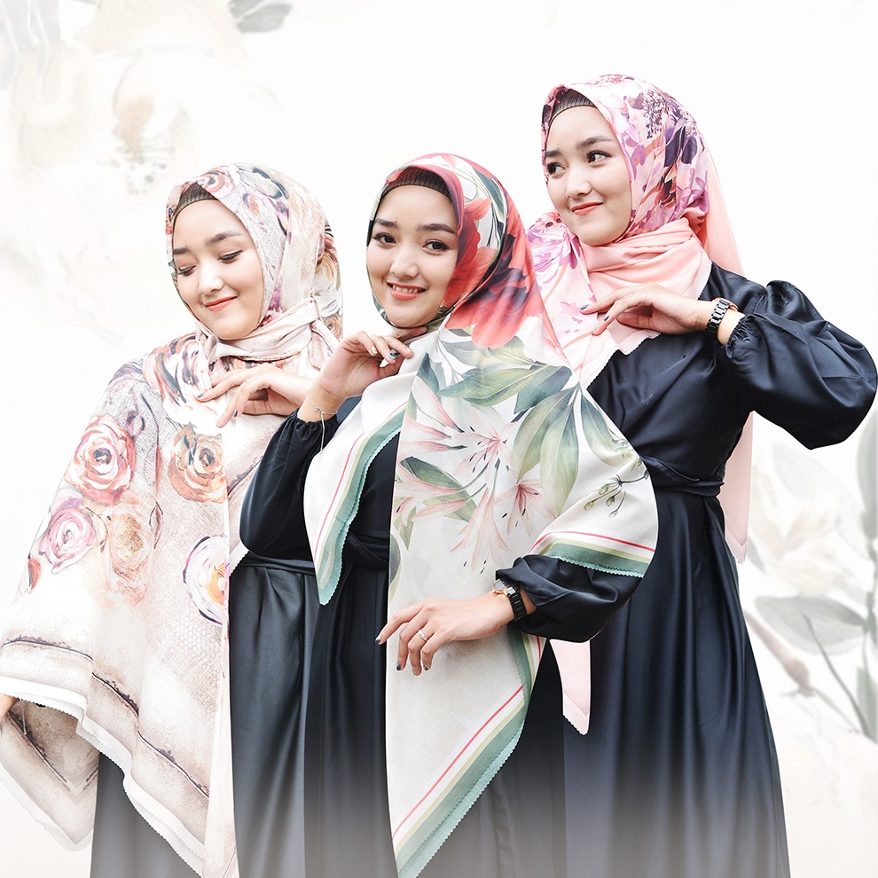 Scarf Segi Empat ROSEMARY Series Material: Voal Premium -Ukuran : 110 x 110 cm -Pinggiran : Lasercut