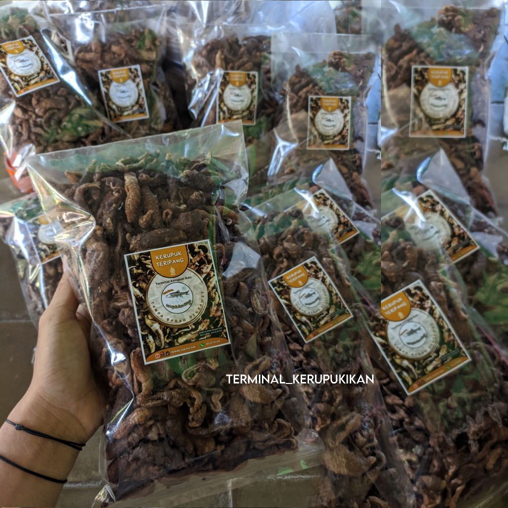 DESKRIPSI Kerupuk Ikan Teripang / Terung / Belunyo (Bahasa Gresik) merupakan bentuk olahan makanan ringan yang berasal dari Teripang atau biasa disebut timun laut ini merupakan hewan inbertebrata Holothuroidea yang bisa dimakan. Teripang ini bisa dengan mudah ditemukan di lautan. Rasa yang Khas Teripang membuat ingin terus menikmatinya. Renyah, gurih nikmat sebagai cita rasa pelengkap cocok disajikan di meja tamu Lebaran.
