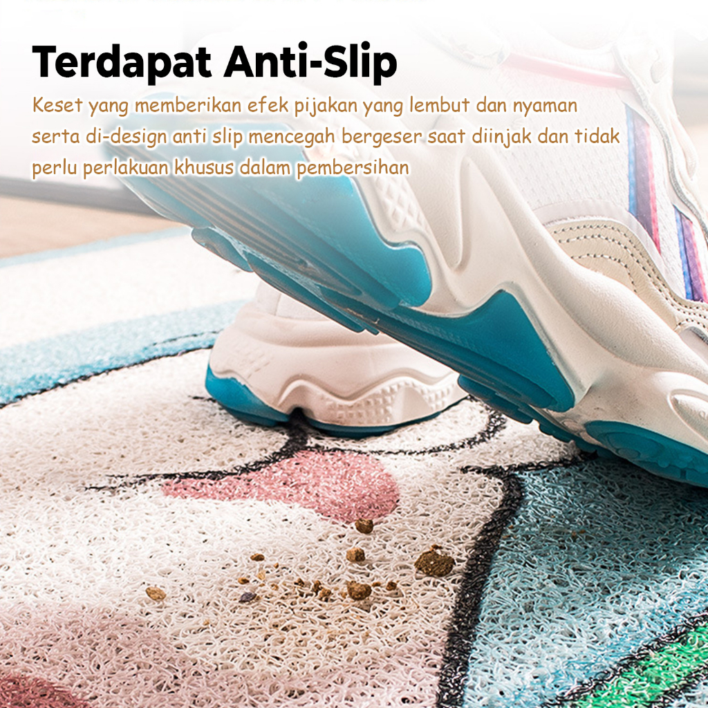 Keset bihun karakter terbuat dari plastik PVC Anti-slip unik dan menarik ini memiliki bahan yang sangat aman dan nyaman serta di-design anti slip mencegah bergeser saat diinjak & tidak perlu perlakuan khusus dalam pembersihan. Memiliki ketebalan sedang 1cm tahan aus & lebih awet. Keset ini cocok untuk penggunaan di teras, depan pintu rumah, kamar mandi, kamar tidur, sekolah anak dsb.