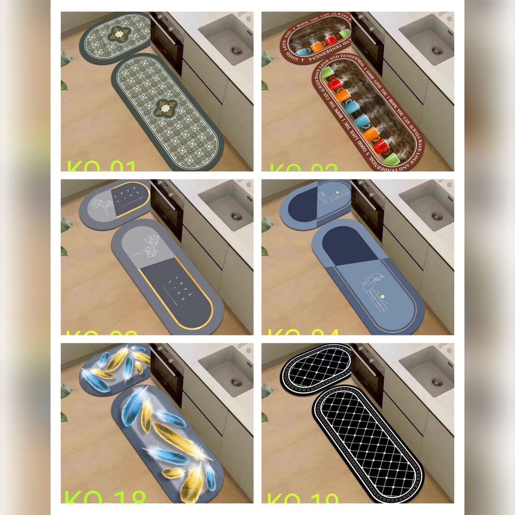 keset dapur set 2in1 bentuk oval / kitcher floor mat modern / alas lantai rumah 1set isi 2 lembar /keset trendy multi fungsi / alas kaki minimalis