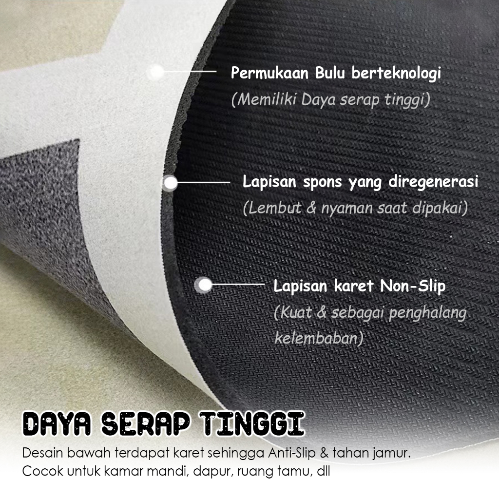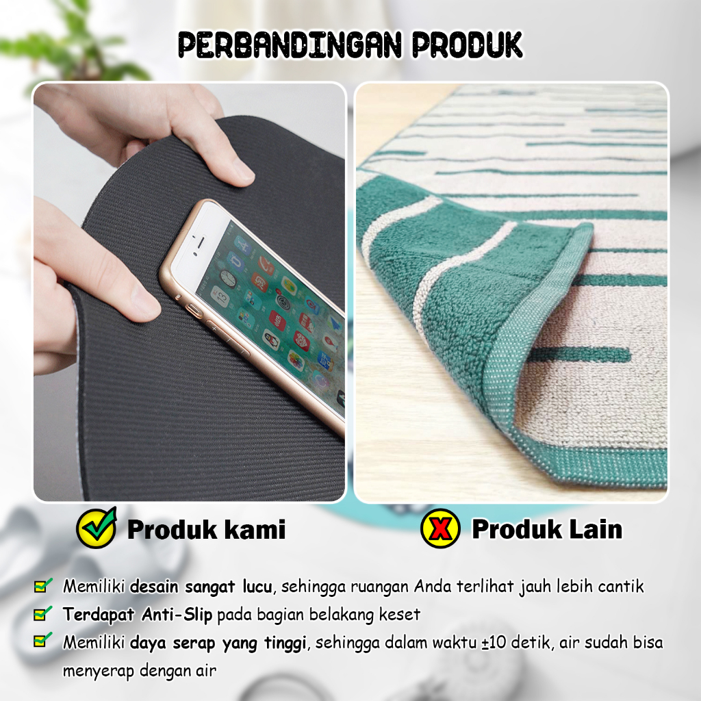 ✅KELEBIHAN : ▪️ Menjaga keseimbangan PH ▪️ Memiliki desain sangat lucu, sehingga ruangan Anda terlihat jauh lebih cantik ▪️ Terdapat Anti Slip pada bagian belakang keset ▪️ Memiliki daya serap yang tinggi, sehingga dalam waktu 10 detik, air sudah bisa menyerap air