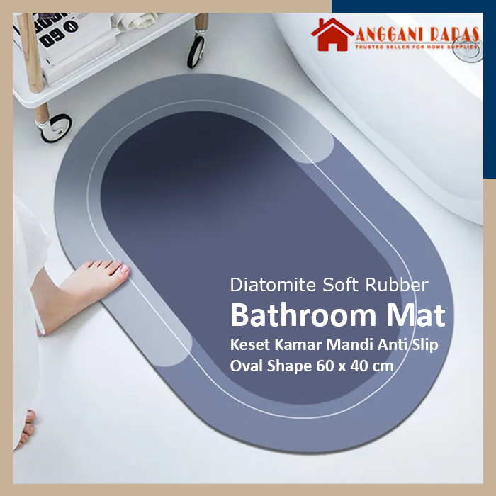 Keset kamar mandi yang tebal dan terbuat dari rubber membuat keset ini akan cepat menyerap air. Memiliki bentuk oval dengan desain yang elegan untuk ditempatkan di depan kamar mandi Anda agar tetap kering.