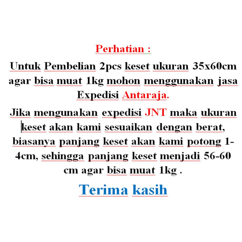 Perhatian : Untuk Pembelian 2pcs keset ukuran 35x60cm agar bisa muat 1kg mohon menggunakan jasa Expedisi Antaraja. Jika mengunakan expedisi JNT maka ukuran keset akan kami sesuaikan dengan berat, biasanya panjang keset akan kami potong 1-4cm, sehingga panjang keset menjadi 56-60 cm agar bisa muat 1kg . Terima kasih