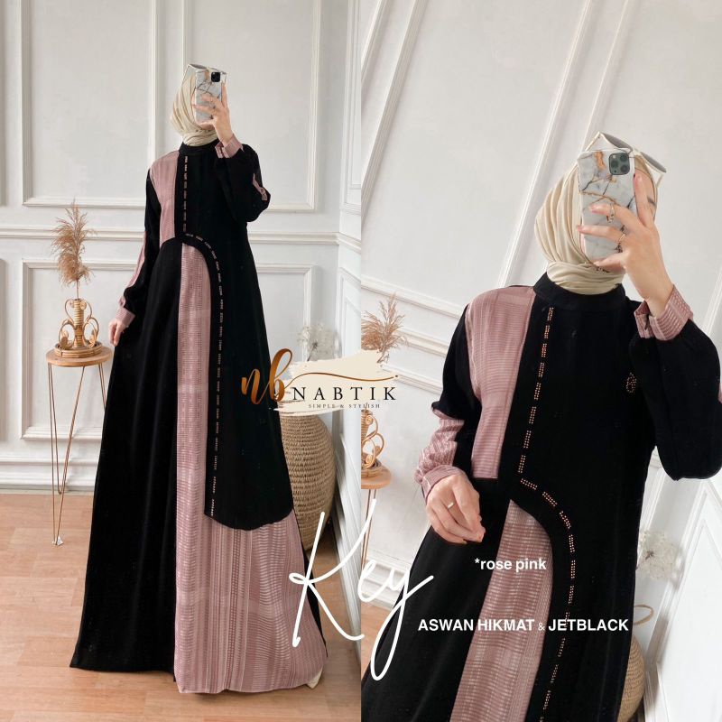 Detail KEY DRESS ORI NABTIK | Gamis Aswan Premium mix jet black