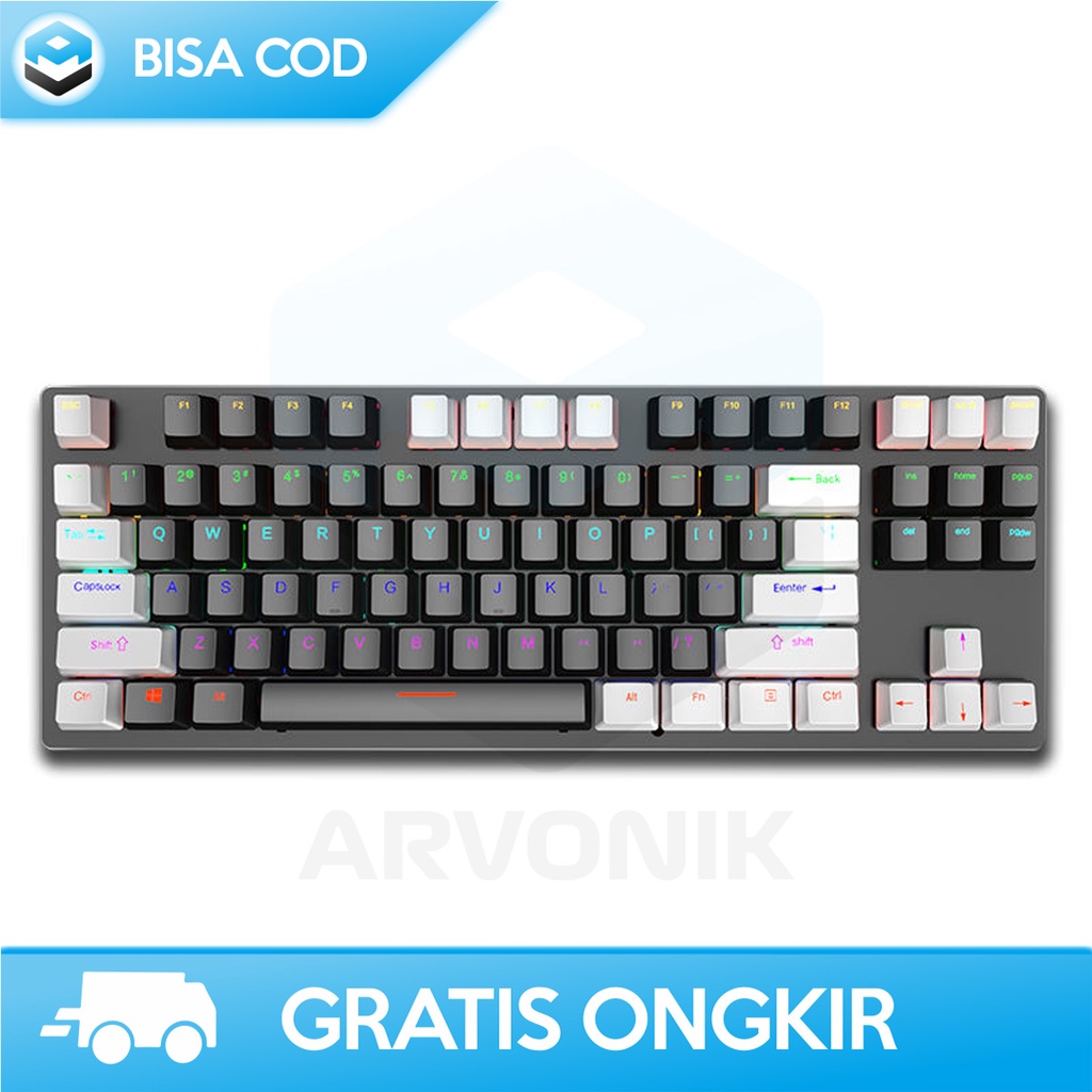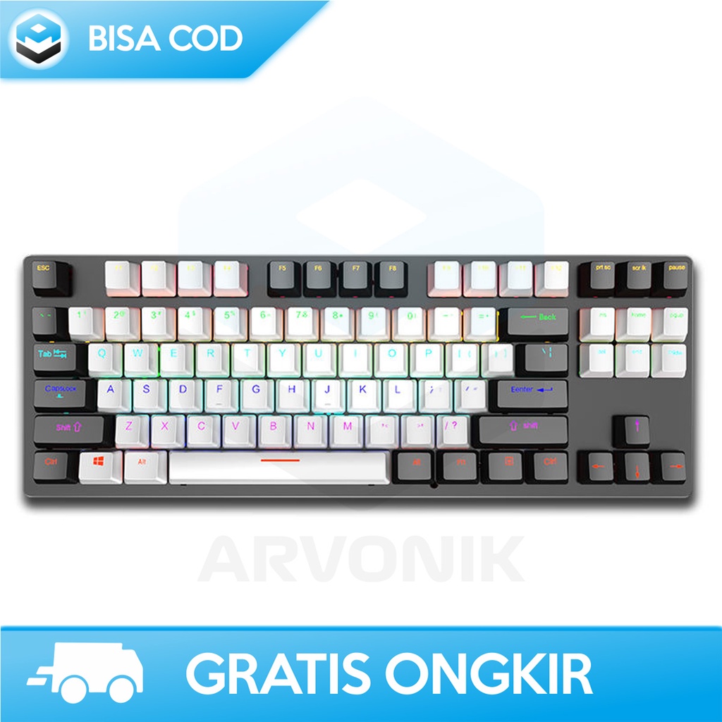 Keyboard mekanis sejati Kami memiliki 2 opsi sakelar (rincian di bawah) Tata letak 87 tombol Beberapa mode pencahayaan RGB Keyboard yang dapat dialihkan sepenuhnya Kompatibel dengan Windows, Mac OS, Linux. Dua sakelar kunci disediakan: Sakelar merah]