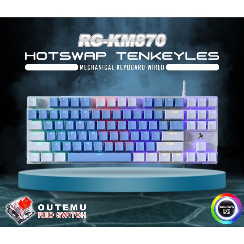 Raptor sekarang inipun turut ikut serta meramaikan produk gaming yang sedang hits di Indonesia. Raptor langsung melahirkan keyboard berteknologi saat ini yaitu mechanical hotswapp dengan dibalut oleh Red Switch keluaran pabrikan Outemu • Keyboard gaming mekanis kompak Tenkeyless Komic KG-KM870 tkl kompak kecil dengan sakelar mekanis tahan debu OUTEMU merah setara Sakelar linier, klik tenang, suara klik, aksi cepat dengan resistensi minimal tanpa rasa benturan taktil dan keyboard ini adalah sakelar HOTSWAP dan Anda dapat mengubah kapan saja Anda suka • Rainbow LED RGB backlit keyboard gaming USB mekanis 20 efek pencahayaan dan mode permainan yang berbeda, mode 6 warna tingkat kecerahan ganda, kecepatan pernapasan, keycaps rekayasa presisi yang menawarkan lampu latar seragam sebening kristal • Keyboard game mekanis seri baja yang dirancang ergonomis Konstruksi plastik-abs tahan lama berkualitas tinggi dengan tombol dan sakelar mekanis yang dipasang di pelat yang berdiri bahkan selama sesi game maraton yang paling menguji • Anti ghosting semua 87 tombol adalah rollover nkey bebas konflik yang menampilkan 13 tombol keyboard multimedia dan desain ergonomis non-slip, tahan percikan dilengkapi dengan konektor USB bebas korosi berkecepatan tinggi berlapis emas untuk koneksi yang andal • Kompatibel dengan windows 10, windows 8, windows 7, windows vista, atau windows xp, dukungan keyboard mac os terbatas bekerja dengan baik dengan semua merek komputer besar dan PC game.