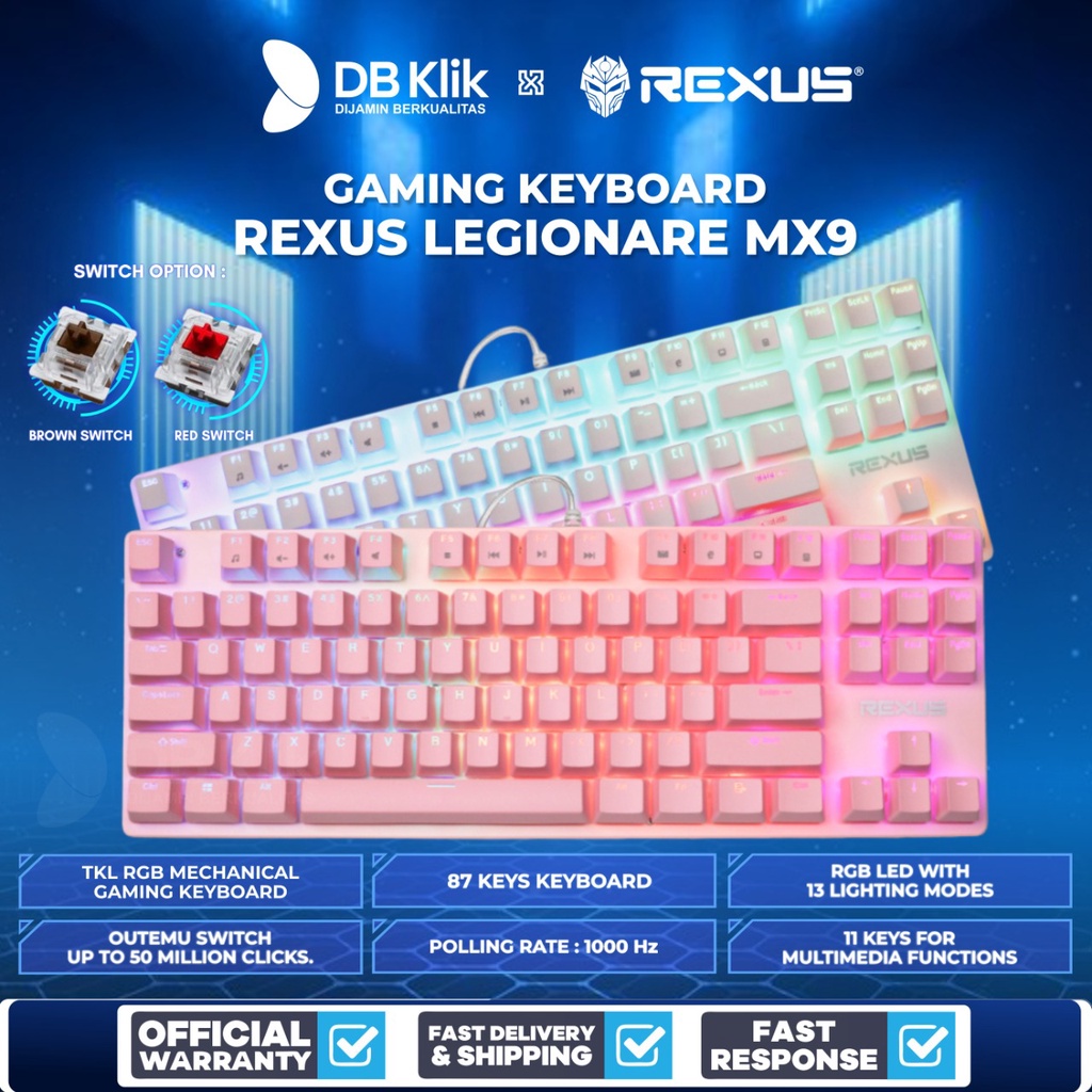 Rexus Gaming Keyboard Legionare MX9 memberikan pengguna pilihan untuk menentukan switch yang sesuai dengan karakteristiknya. Terdapat dua pilihan switch, yaitu switch Biru dan Merah. Biru adalah switch yang paling “clicky” dengan actuation force sekitar 50-55gram dan switch merah mempunyai karakter yang lembut dengan actuation force sekitar 45-50gram.
