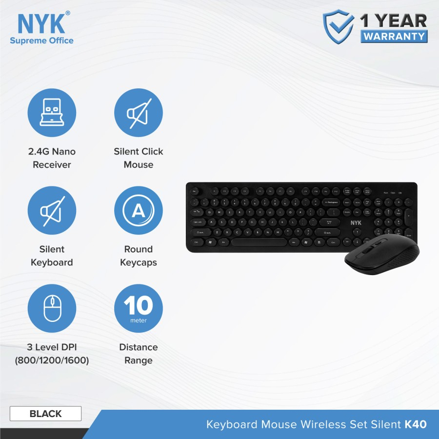 Detail Keyboard Mouse Black Wireless Combo NYK K40 Hitam