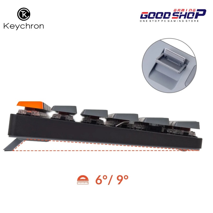 SPECIFICATION Color: Black Number of Keys: 104 keys Switches: Low Profile Gateron Mechanical / Keychron Optical Switch Number of Multimedia Keys: 12 Main Body Material: ABS+Aluminum Frame Keycap Material: ABS Layout: ANSI Polling Rate (Wired Mode): 1000 Hz Polling Rate (Wireless Mode): 90 Hz