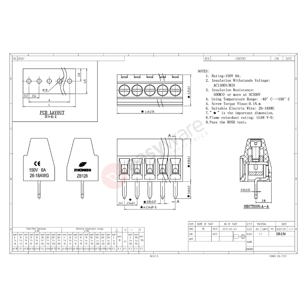KF128-2.54 mm 2P 2 Pin Screw Terminal Block 2.54mm 150V 6A Terminal Blok KF128 Kecil