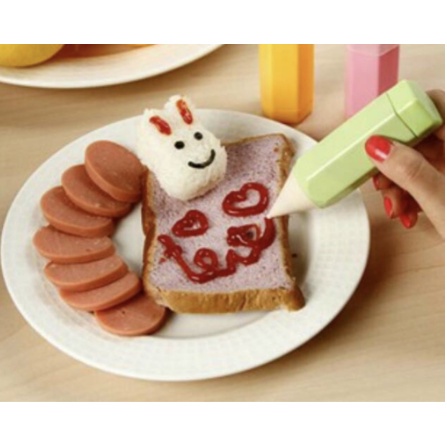 Food Drawing Pen merupakan alat untuk menghias makanan, cake/kue. Dengan bentuknya seperti pena memudahkan anda dalam menggambar atau menulis di permukaan makanan. Dapat diisi kecap, mayonaise, selai, saus, coklat , susu kental dll