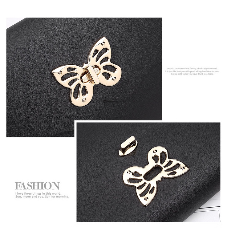 Ukuran 24x5x18cm Tas ini cocok lho untuk dipakai kemana saja, dan cocok juga untuk pakaian apa aja -pengunci tas gold motif kupu-kupu Bahan Kulit PU