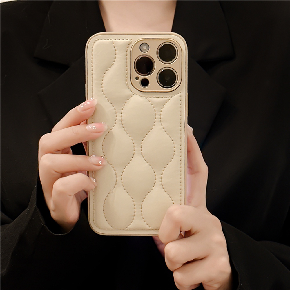 Khaki Down Jacket Camera Protector Casing iPhone 14 Pro MAX 11 12 13 Pro MAX Case Puffer untuk iPhone XS MAX XR Soft Shockproof Cover