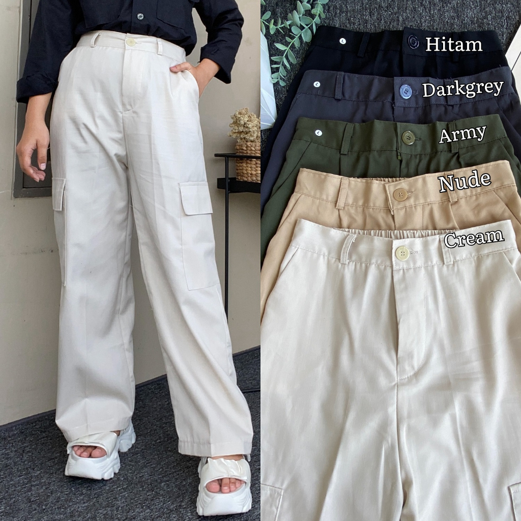 Video perkenalan produk KHAKI HW LOOSE CARGO / PEANUT HW CARGO LOOSE PANTS. Sumber: Shopee.