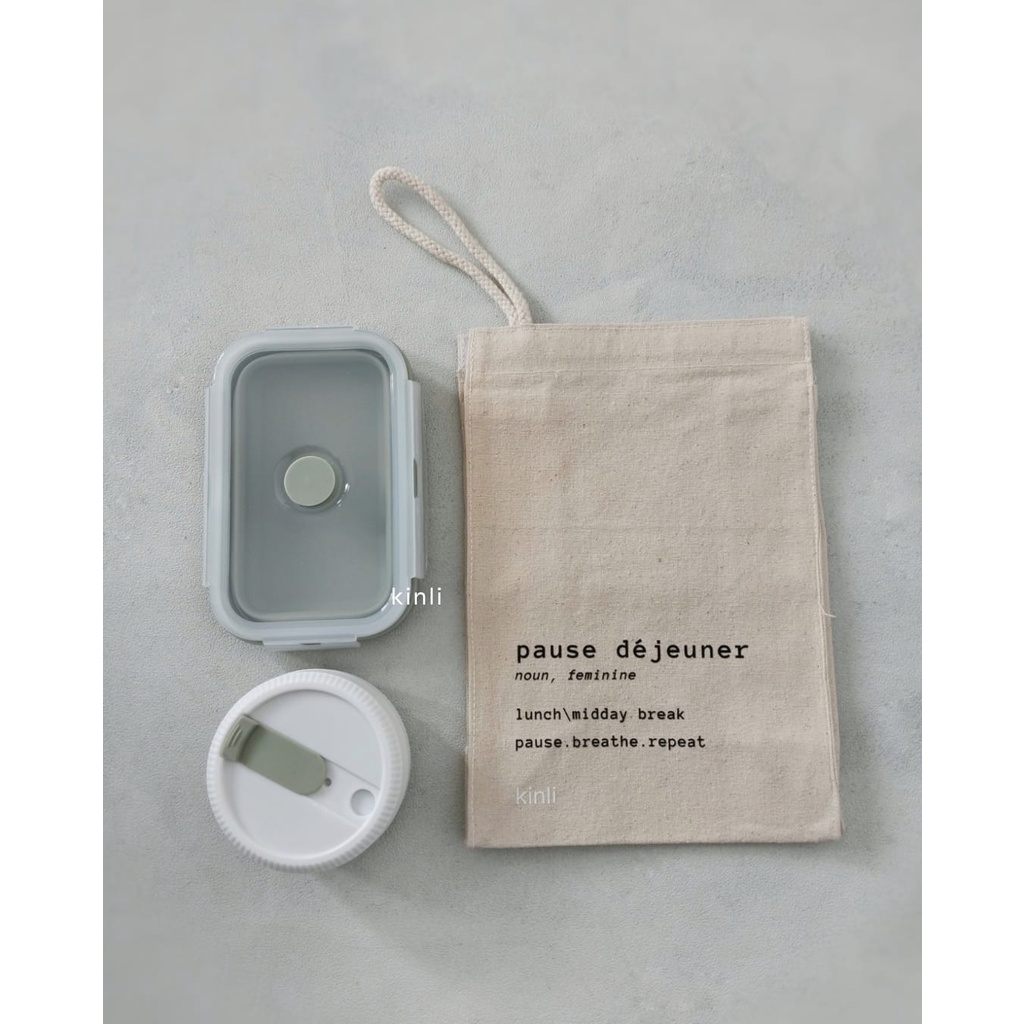includes: 1 collapsible sillicone coffee cup BPA free (upon availability) 1 collapsible large lunch box (upon availability) 1 canvas lunch bag