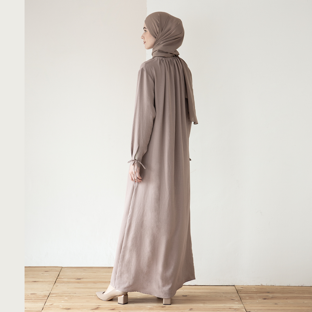 Fashion Muslim > Dress Muslim > Gamis > Khansa by Aska Label - Dress wanita polos gamis basic wanita bahan crinkle anti kusut busui friendly warna mocca dusty pink coklat