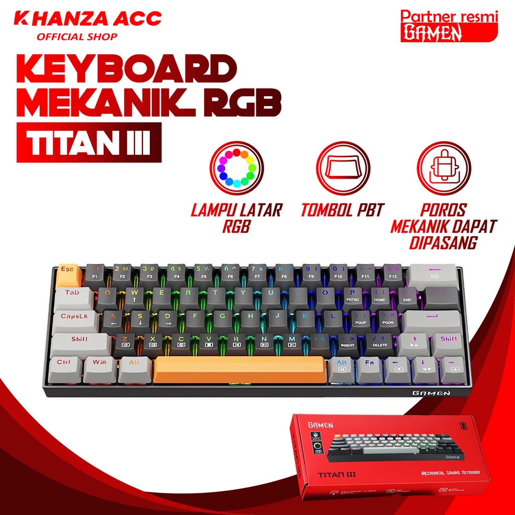 Deskripsi GAMEN TITAN III Keyboard Gaming Wired Mechanical Pluggable Switch Blue RGB LED Light PBT Keycaps