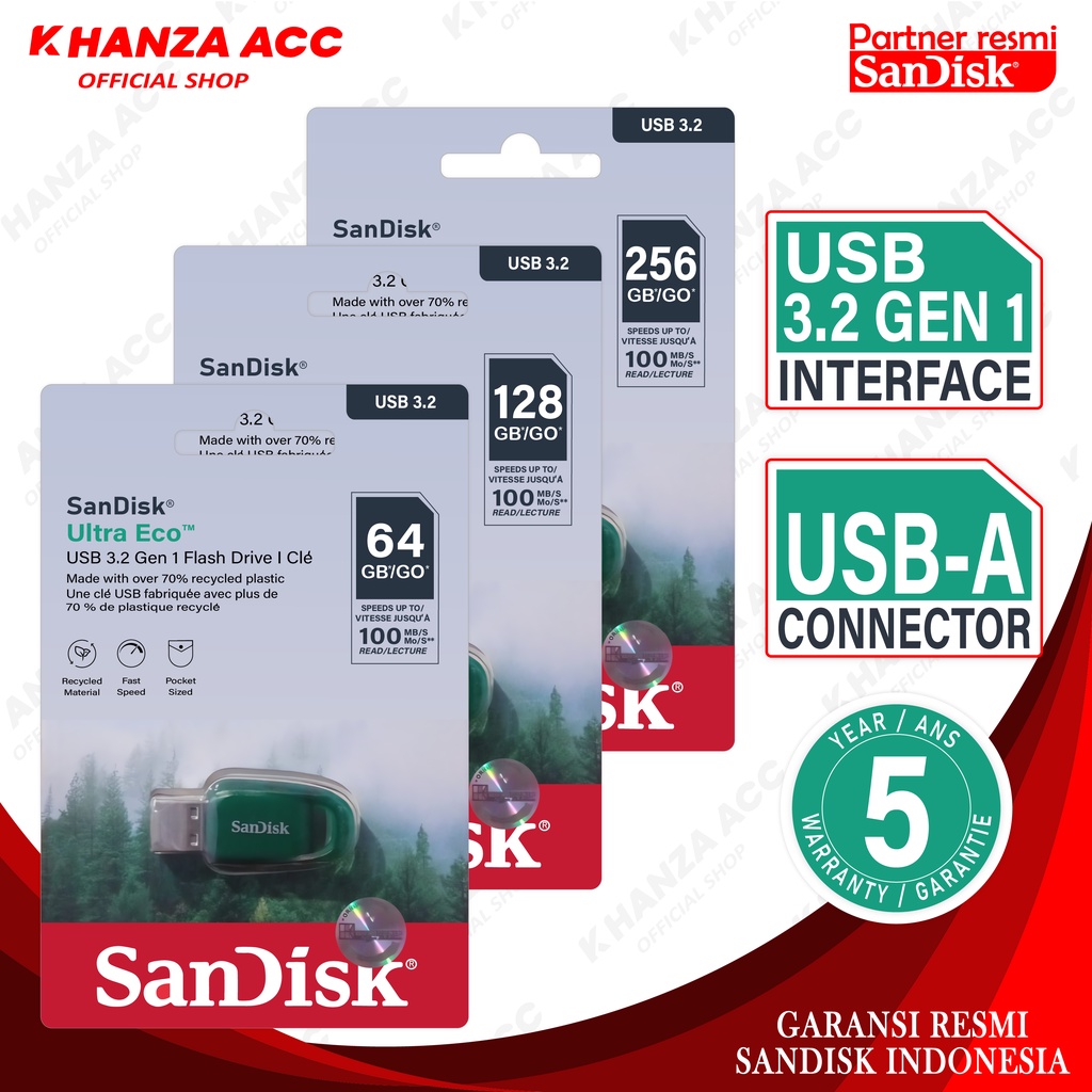 Detail KHANZAACC SANDISK Ultra Eco Flashdisk 64GB / 128GB /256GB USB 3.2 Gen 1 CZ96