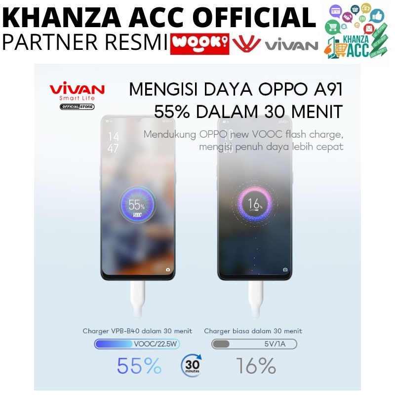 Keunggulan: 1. Real capacity 40000mAh 2. Dapat mengisi daya smartphone berkali-kali: *Samsung S10 (7.6 kali) *Oppo Reno 2 (6.5 kali) *Realme Pro 5 (6.5 kali) *iPhone 8 (14 kali) 3. Kompatibel untuk berbagai smartphone dengan OS Android dan iOS. 4. Garansi Resmi 1 Tahun (Tukar Baru jika mengalami kendala teknis) 5. Dual port input (Micro USB & Type-C) dan Triple port Output (2 USB-A & 1 Type-C). Dapat digunakan untuk mengisi daya 3 perangkat secara bersamaan. 6. Aman digunakan, karena sudah dibekali dengan 9 fitur smart protection: *Overcharging *Overcurrent Protection *Over-discharge Protection *Short Circuit Protection *Overvoltage Protection *Over Power Protection *Recovery Protection *Electromagnetic Protection *Temperature Protection 7. Sudah mendukung pengisian daya cepat 22.5W: *Power Delivery (PD) untuk iPhone 8-12 *VOOC Flash Charge untuk OPPO & Realme *FCP&SCP Quick Charge untuk Huawei *Quick Charge (QC3.0) untuk Samsung & Xiaomi *dan brand smartphone lainnya yang sudah mendukung quick charge. 8. Powerbank dapat terisi penuh dalam 15 jam. 9. Hadir eksklusif dengan Large Screen LED Battery Display. 10. Dilengkapi dengan kabel charge Type-C 5A. 11. Catatan Lab VIVAN pada Powerbank VPB-B40: *Dapat mengisi daya iPhone 12 50% dalam 30 menit. *Dapat mengisi daya OPPO A91 55% dalam 30 menit.