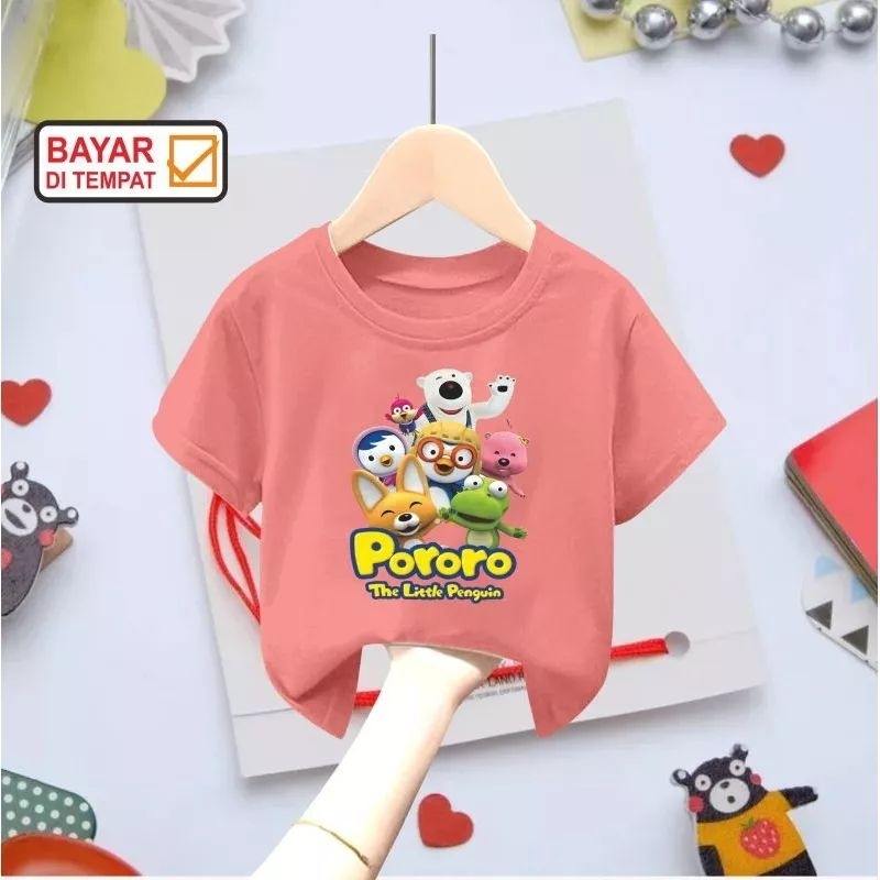 KHILIN STORE Baju Anak Perempuan Laki Laki Pororo Usia 2-10 Tahun Kaos Atasan Anak Kids Cewek Cowok
