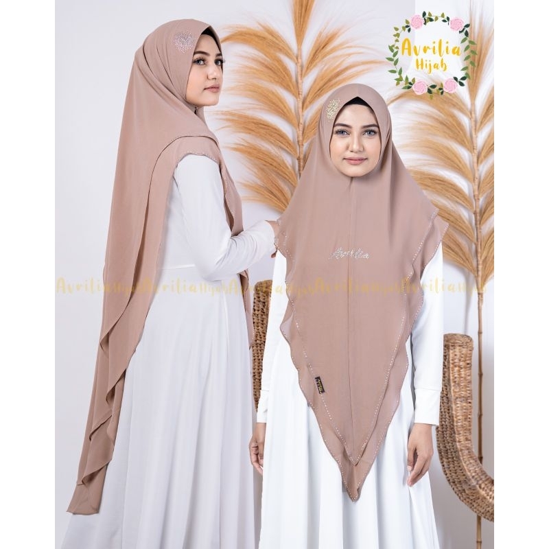 KHIMAR Alisha ori Avrilia hijab bahan cerruty babydoll import, 2 layer, pad anti tembem bukan busa, pd 105 cm pb 135 cm dihiasi Swarovski dibagian kepala, sangat cantik