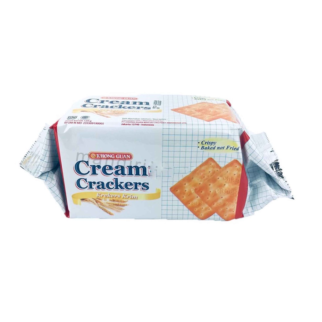 LINK : https://shopee.co.id/BUBBLE-WRAP-DAN-KARDUS-TAMBAHAN-i.233423253.7160101442 Khong guan / Cream crackers / Biskuit 120g KHONG GUAN Cream Crackers merupakan salah satu varian Crackers dari Khong Guan. Khong Guan Cream Crackers hadir dalam bentuk krim crackers segi empat renyah yang dikemas praktis untuk menemani waktu kumpul dan santai bersama teman dan keluarga.