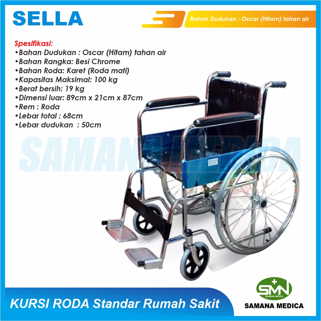 Sella KY809 Kursi Roda Standar Rumah Sakit Chrome Tahan Air Dorong Sendiri Ban Mati Baru