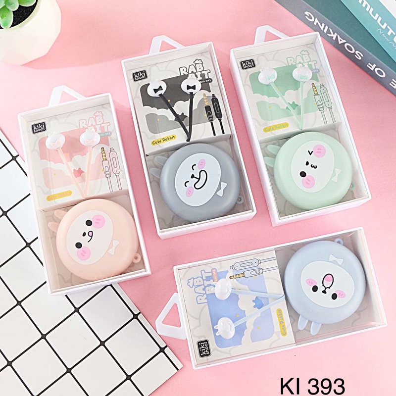 [ KI 393 ] Set Headset Earphone motif RABBIT + Wadah penyimpanan Motif