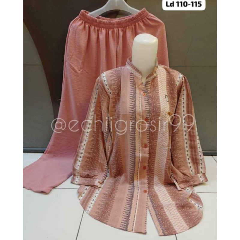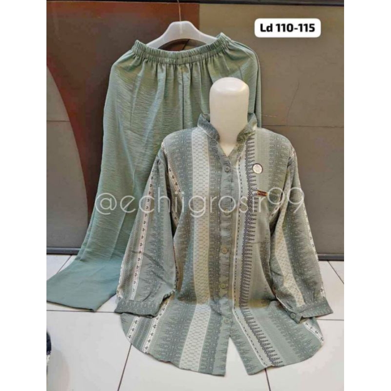 Matt . Rayon UNIQLO Premium Ld110-120 ( max BB 85kg ) Kancing Aktif ( Busui ) Lengan serut 7/8 PJ BAJU 67cm PJ Celana 98cm Pinggang Full Karet โ Ada saku di sebelah kanan Celana
