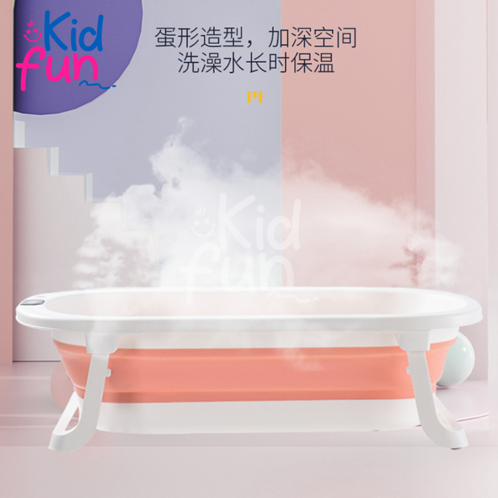 Kidfun- Grosir - Bak Mandi Bayi Thermometer Sensor Panas Lipat Peralatan Bayi Portable Tempat Mandi Bayi Foldble Baby Bathtub Tempat Mandi Bayi Mandi