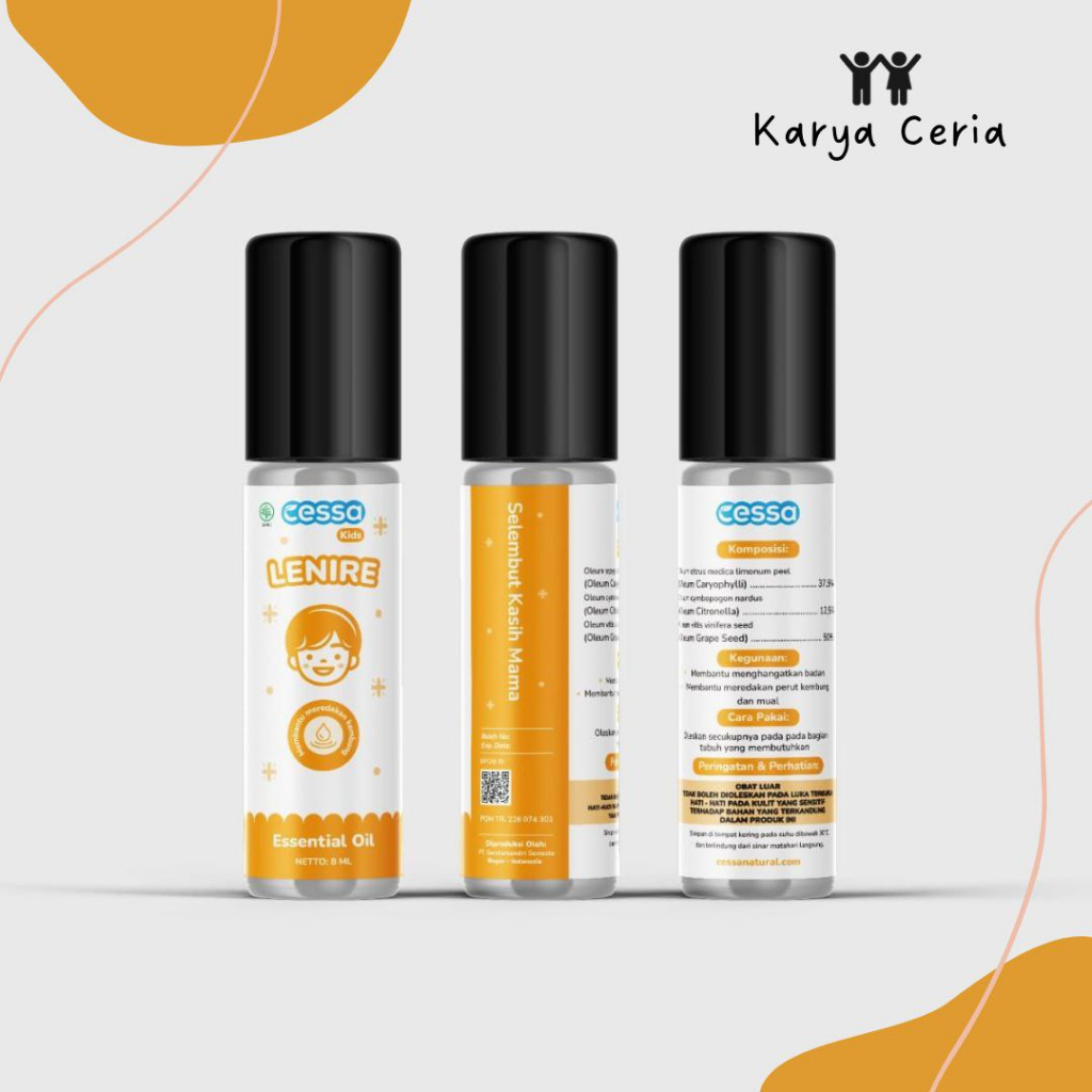 Cessa Lenire merupakan Essential Oil yang khusus diracik untuk membantu menenangkan bayi saat rewel atau nangis terus. Essential Oil berasal dari tumbuhan yang diekstraksi esensi atau manfaat terbaik dari tumbuhan tersebut dan diracik dengan berbagai kandungan bahan alami yang sangat aman untuk bayi, Dengan 100% Aroma Pure Therapeutic Grade Essential Oil akan membantu merelaksasi bayi sehingga bisa tenang kembali.