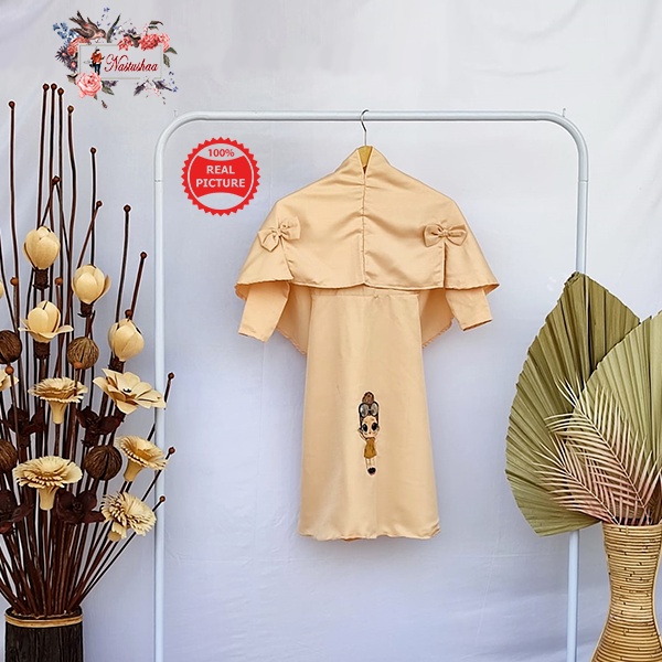 Kids Gamis Anak Usia 3-5 Tahun LOL LED Bahan Balotelli Setelan Gamis Syari Bergo Pita Anak Perempuan Cantik Warna Cream