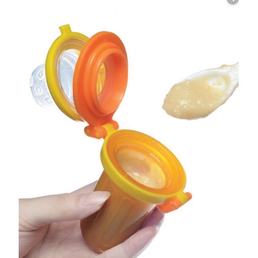 Kidsme Food Squeezer cocok untuk makanan semi cair sehingga si kecil bisa memakan makanan dengan meremas bagian bawah dan menghisapnya dari pacifier dengan aman dan tanpa resiko tersedak.
