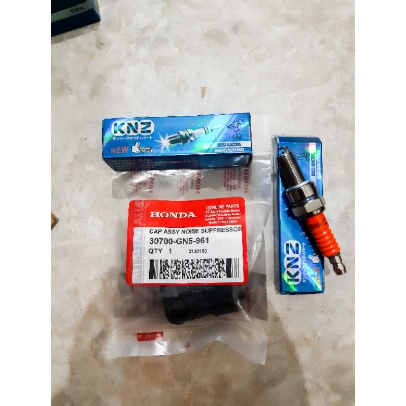Sepaket sudah dapat Cop busi original Honda dan Busi Racing merk KNZ drat panjang PNP BEBEK HONDA.