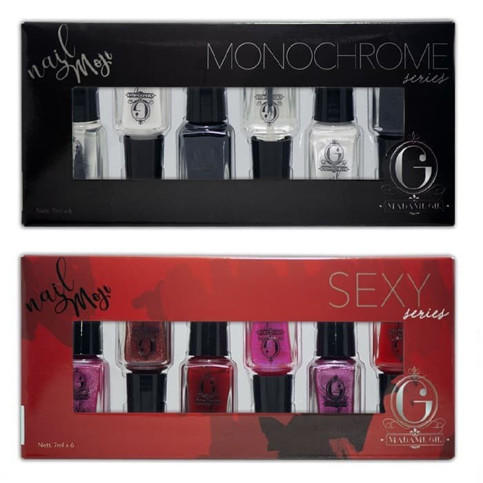 1. Earth Series (Nail Moji 32 Conserve, Nail Moji 37 Clifton, Nail Moji 33 Loving, Nail Moji 4 Mother, Nail Moji 36 Stories, Nail Moji 34 Humblebumble) 2. Fantasy Series (Nail Moji 22 Galatic, Nail Moji 30 Purpleblaze, Nail Moji 20 Silverince, Nail Moji 15 Whitespace, Nail Moji 9 Pink Haze, Nail Moji 14 Candy Glam) 3. Glamour Series (Nail Moji 24 Pride Bride, Nail Moji 25 Made Ya Look, Nail Moji 3 Darkest Time, Nail Moji 10 Violetta, Nail Moji 12 Yes Ma'am, Nail Moji 17 Hall Of Fame) 4. Monochrome Series (Nail Moji 16 Crissy, Nail Moji 15 Whitespace, Nail Moji 3 Darkerst Time) 5. Nude Series (Nail Moji 26 Smiley, Nail Moji 29 Blushing, Nail Moji 13 Satin Skin, Nail Moji 27 Brulee, Nail Moji 28 Exotica, Nail Moji 11 Shimashima) 6. Sensual Series (Nail Moji 1 Flaming, Nail Moji 35 Childkish, Nail Moji 5 So Proud, Nail Moji 6 Crush, Nail Moji 31 Love You, Nail Moji 2 Amour) 7. Sexy Series (Nail Moji 21 Lacey, Nail Moji 19 Ladyboss, Nail Moji 5 So Proud, Nail Moji 23 Stars, Nail Moji 18 Nighty, Nail Moji 1 Flaming) ============= Tulis dikolom keterangan yaa kak Mau series yang mana Jangan lupa, kalo lupa kami kirim randomly sesuai stock <3 Thank you-