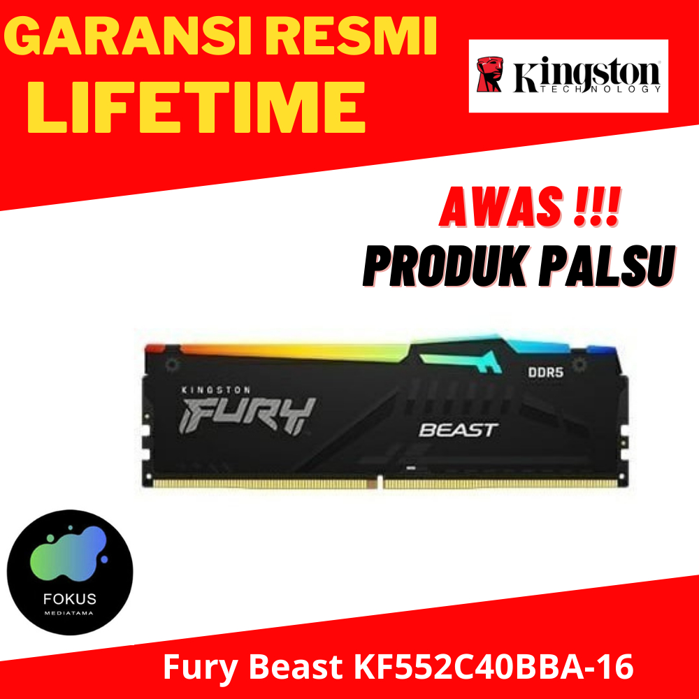 Kingston Fury Beast RGB DDR5 5200MHz 16GB (1x16GB) - KF552C40BBA-16 100% Original dari Kingston Technology