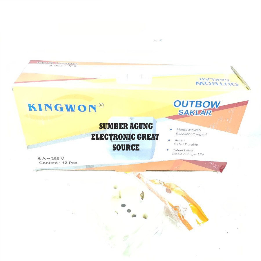 Kingwon Stop Kontak Tempel Outbow 6A 250V Model Segi Kotak Timbul