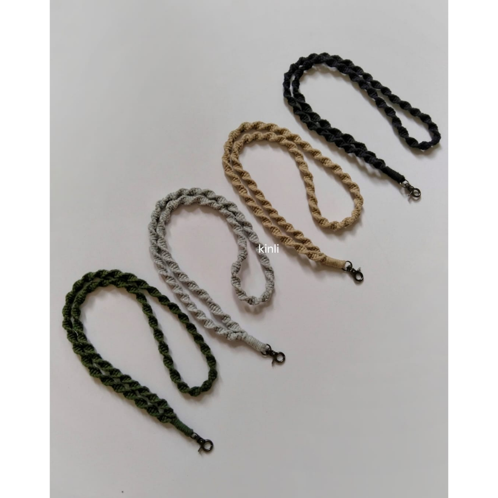 Detail kinli handmade macrame strap name tag id card handphone gantungan tali